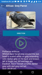 - On selecting audio button, app plays the audio of the animal info.